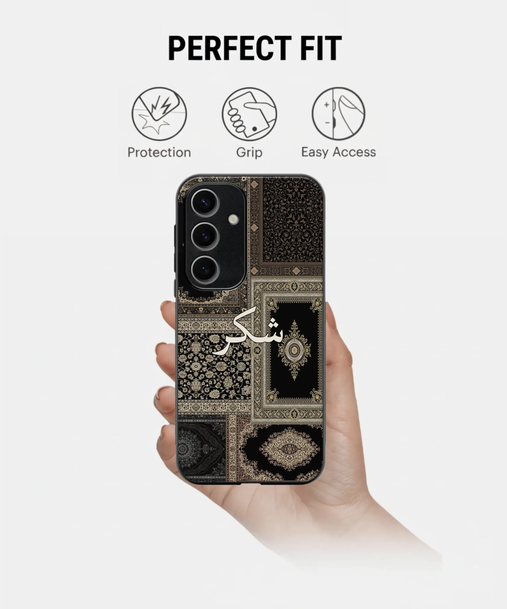 Shukr Black-Biege Persian Design Metal Case for Samsung Galaxy A55
